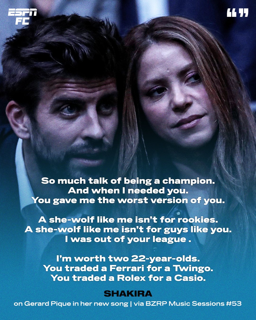 Ozuna Shakira It wasnt your fault nor was it mine It was the monotonys fault I never said anything but it hurt me Mmm ah I knew this would happen Oh. Fans even say that shes never been one to shy away from metaphors but that with this new. SHAKIRA has taken a swing against her ex Gerard Piqué and his younger lover in leaked lyrics from her new song.